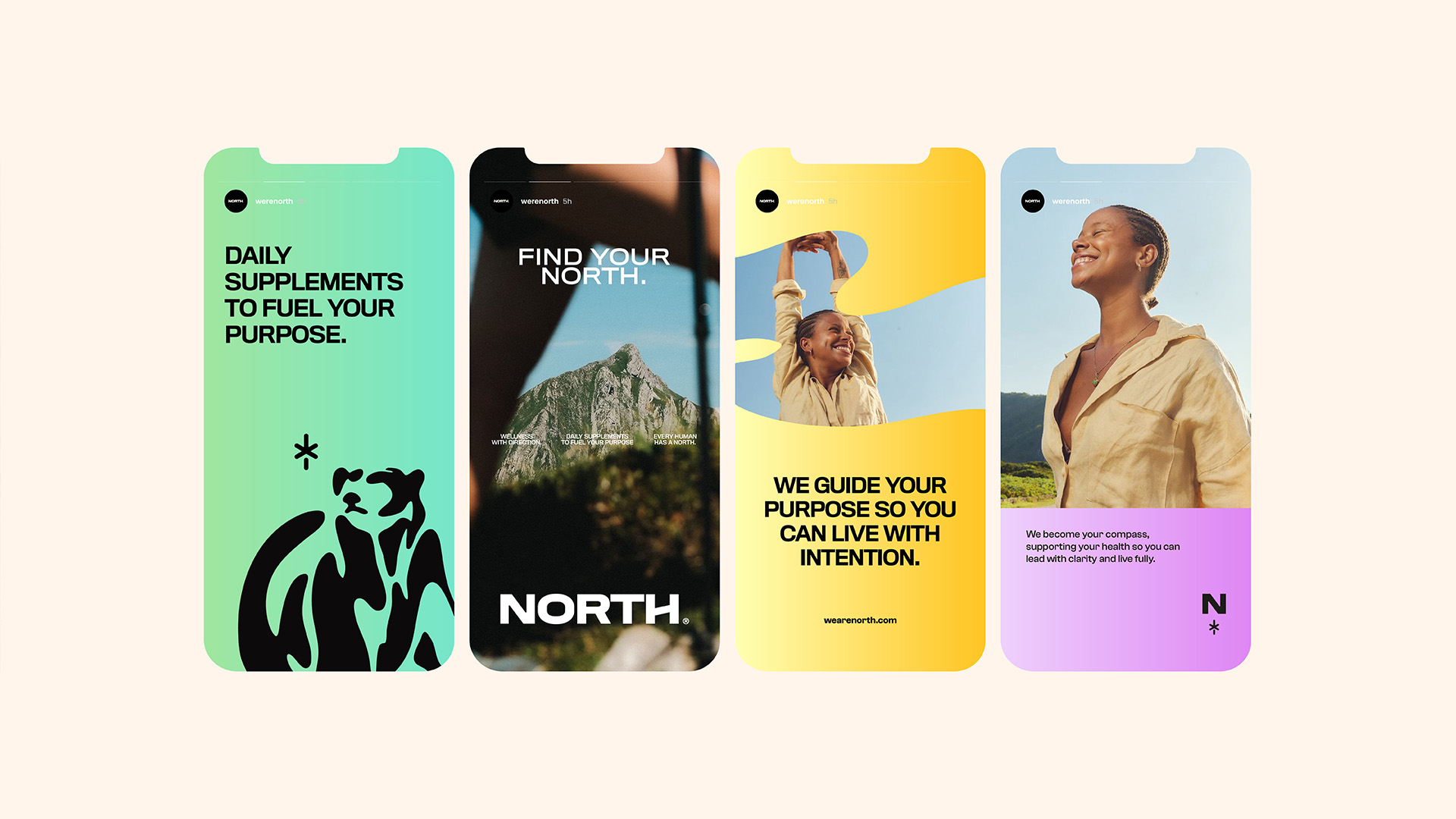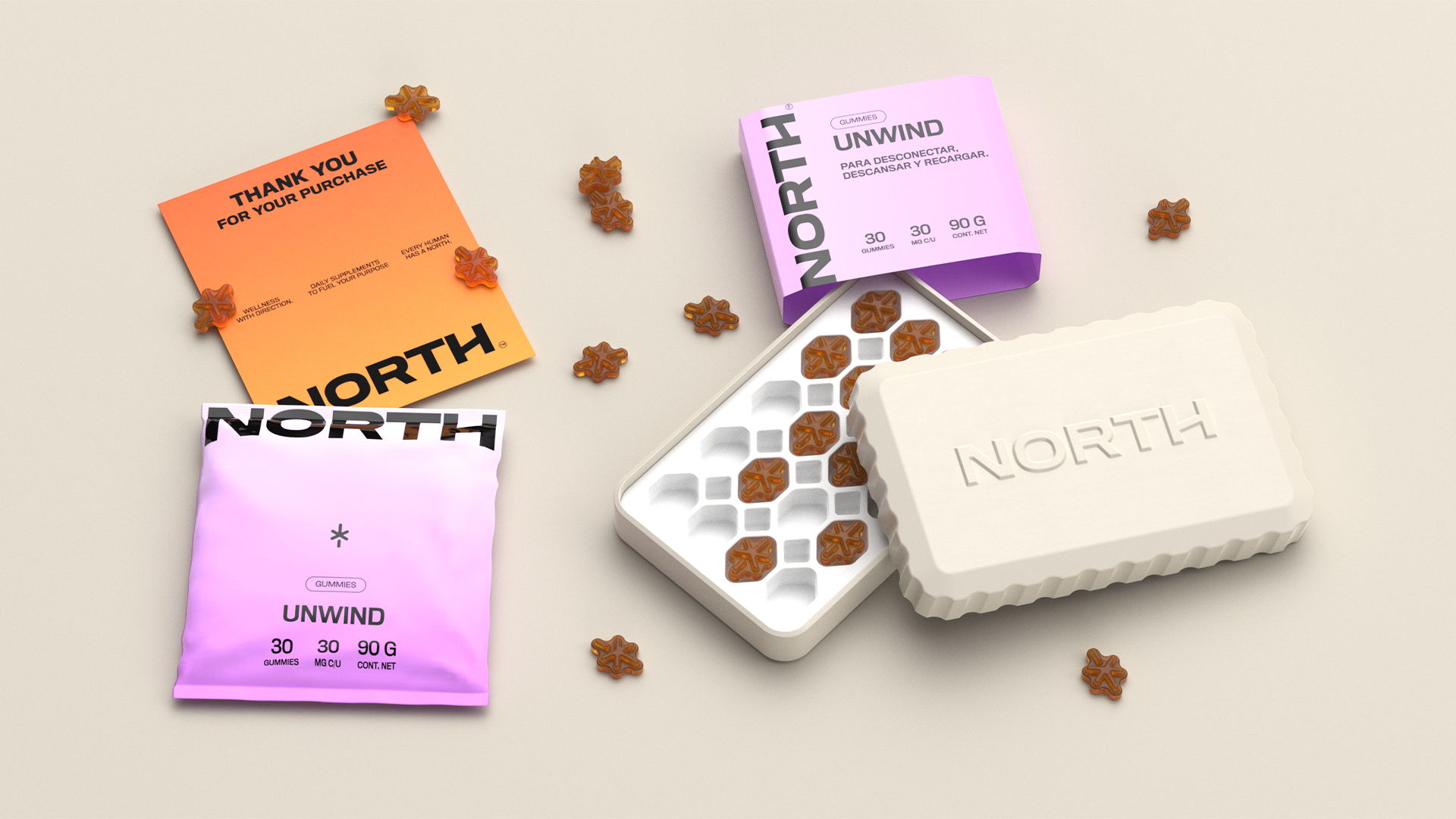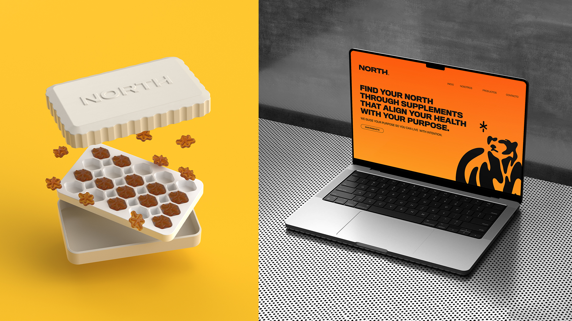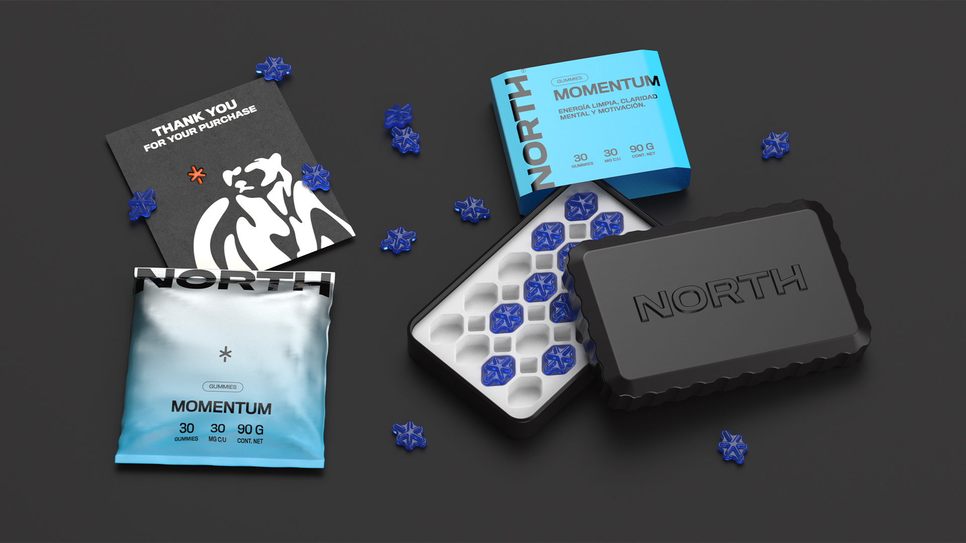 North is a Monterrey based wellness brand created to inspire people to find and follow their true north, their source of direction, strength, and purpose. Born from its founder’s personal pursuit of wellbeing, the brand promotes longevity through premium supplements. Its visual identity and packaging merge trust, practicality and vitality, blending Arctic-inspired elements with warm human tones. Honest, bold, and uplifting, North seeks to convey improvement and determination while remaining approachable, inclusive, and environmentally conscious.